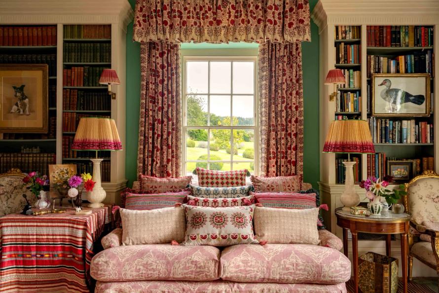 In the lounge, it drifts from the window seat to the sofa plump with cushions, the house-favourite armchair, the footrests, and throws.