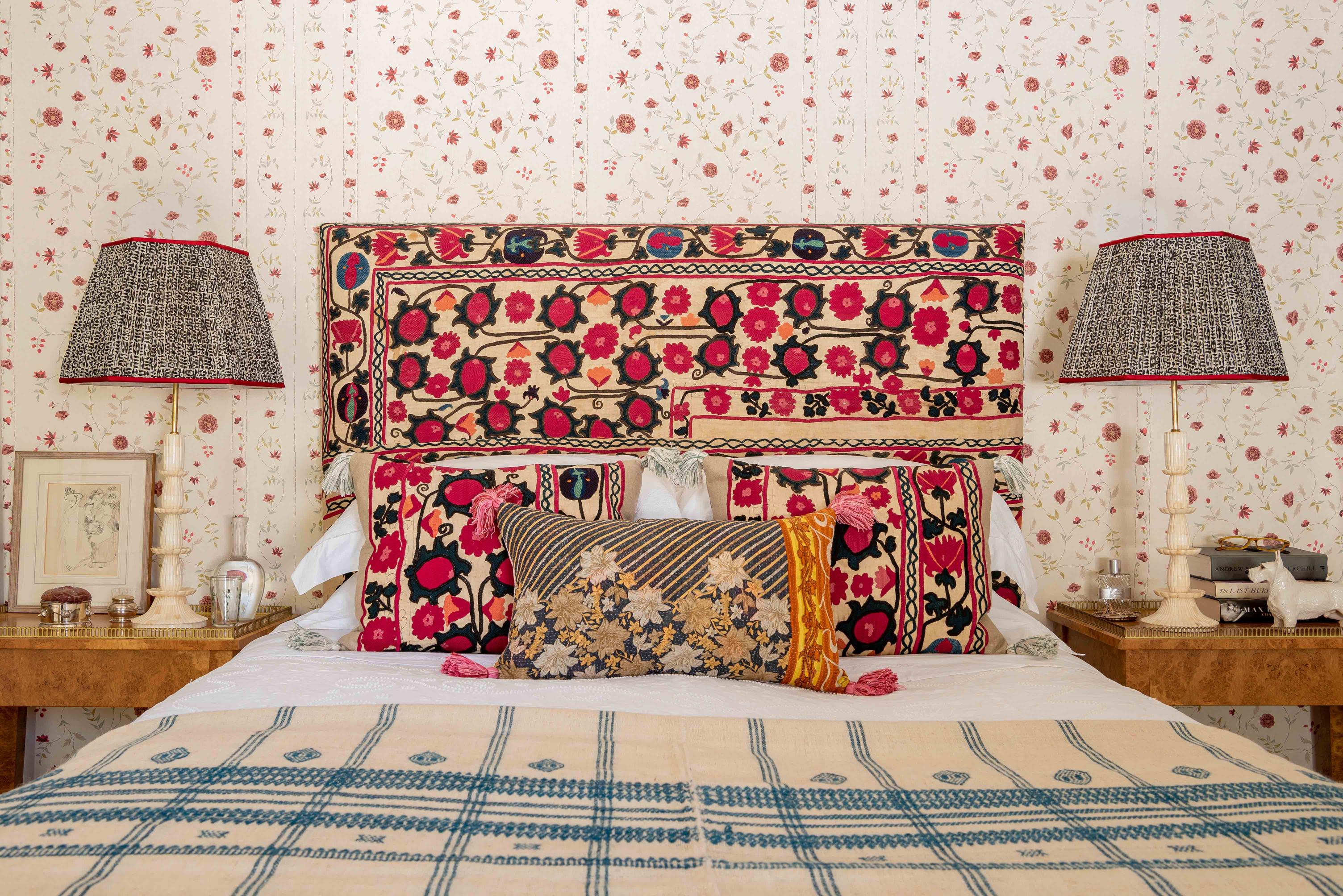 At Penny Morrison, we love breaking the rules and mixing and layering patterns. This can bring depth and harmony to a bedroom while keeping things vibrant and interesting. Bedrooms need a personality and pattern is a great way to add this. Be bold and try mixing patterns and textures of fabrics for yourself, such as using an embroidered bed throw or suzani to add that abundance of colour and warmth to your room. Life is full of fun and colour so combining patterns in your bedroom is just an extension of this.