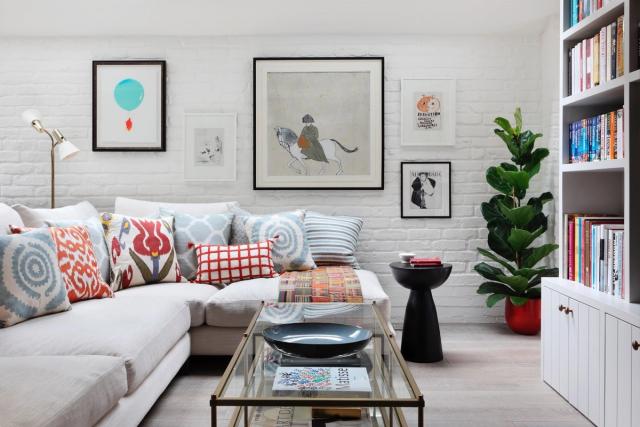 You can introduce a new colour palette with the additions, rather than removing everything. Contrasting colours and prints add depth and dimension to a room and, provided the elements that really anchor the décor – say, a pair of curtains around a large, feature window, or the main furniture, or a feature wall – display your colour palette, it will show through and do that work for you.
