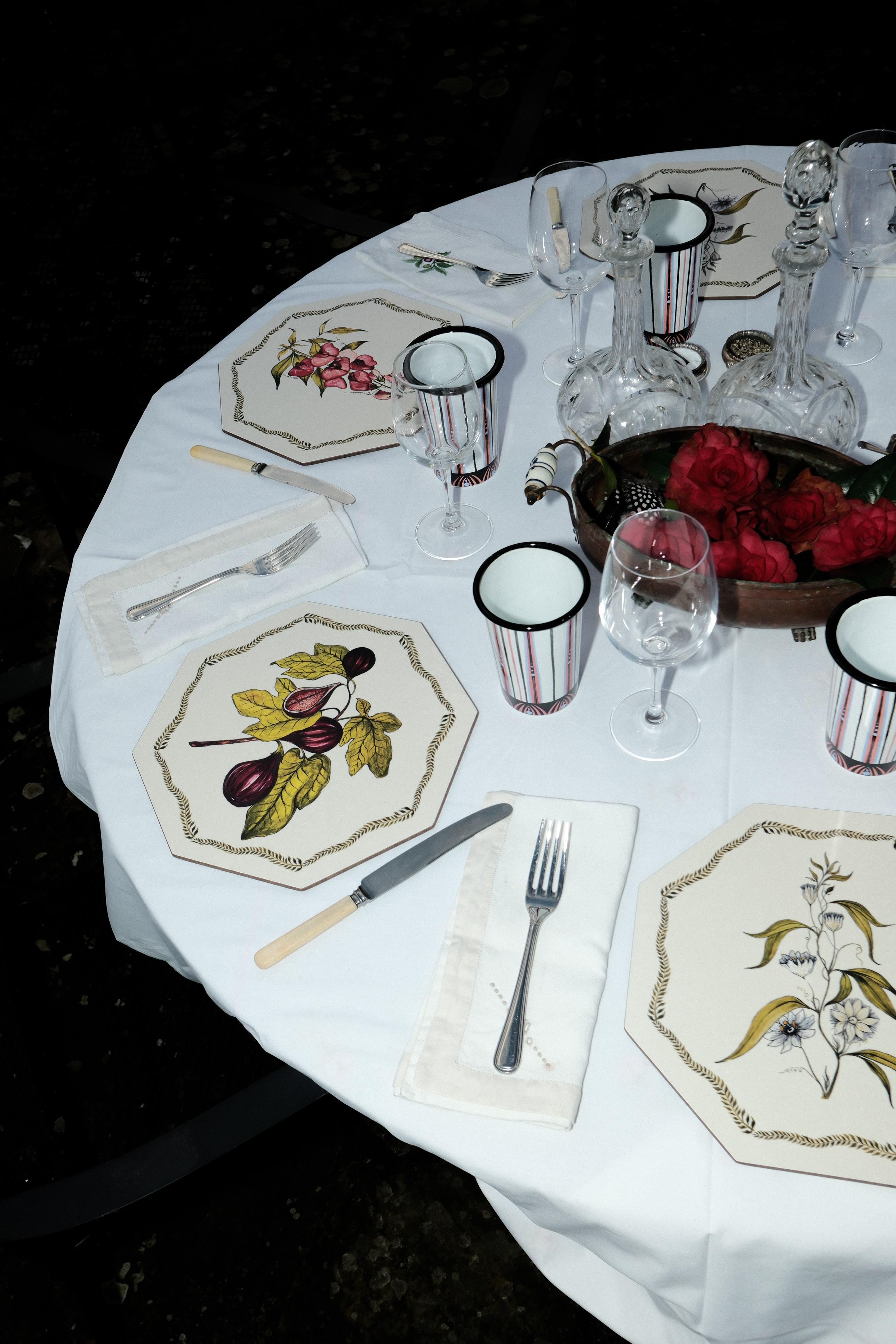 Illustrations by Bell adorn the collection, adding a playful and artistic flair to the tabletop, inviting you to immerse yourself in a world of colour and creativity.