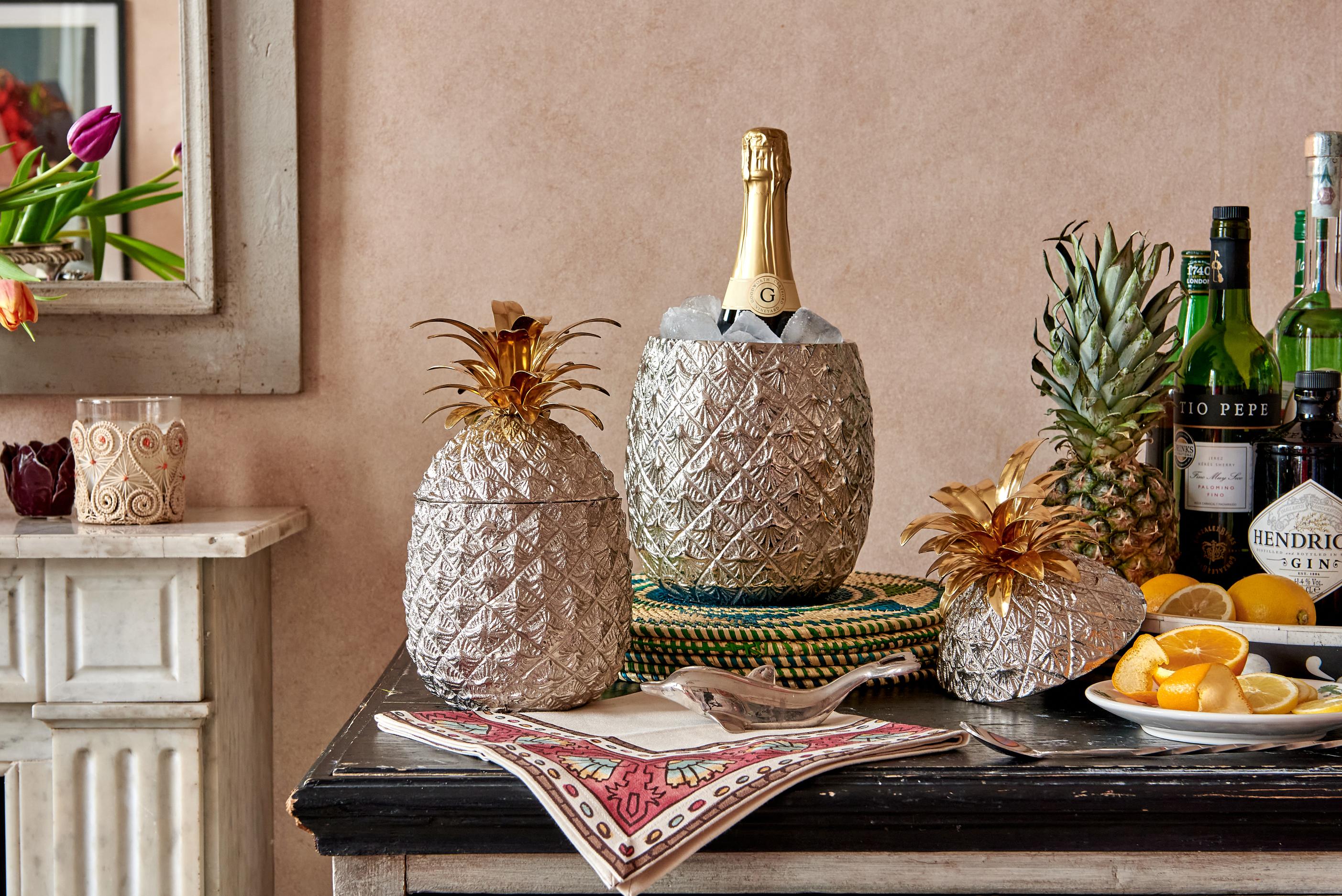 We worked collaboratively with artisans in India to create our elegant and striking silver-plated ice buckets. The craftsmanship and skill involved in creating these pieces is dazzling, and we are so proud to show them off.