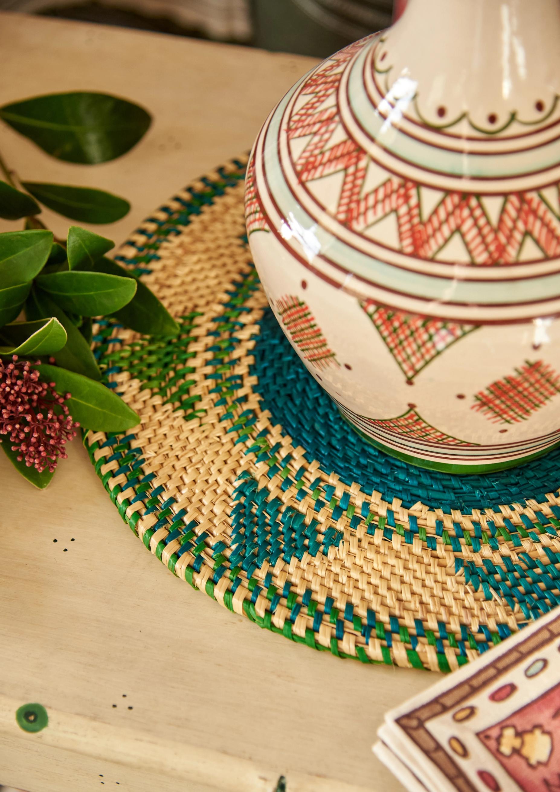 The final additions to our tableware within the Ethnic Collection are our Ghanaian Woven Straw Table Mats, in which we are proud to have worked in collaboration with artisans based in Ghana supporting women’s right.