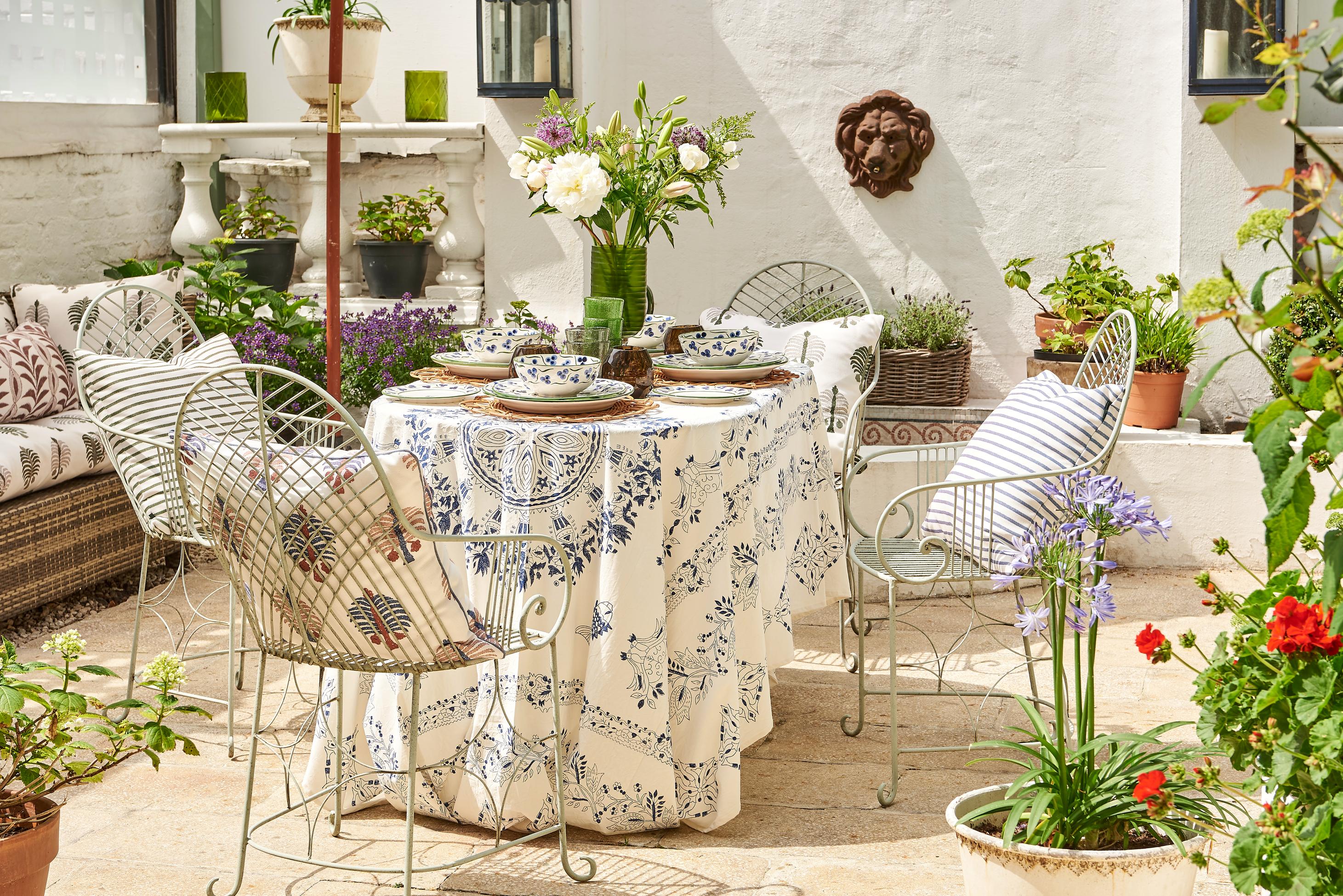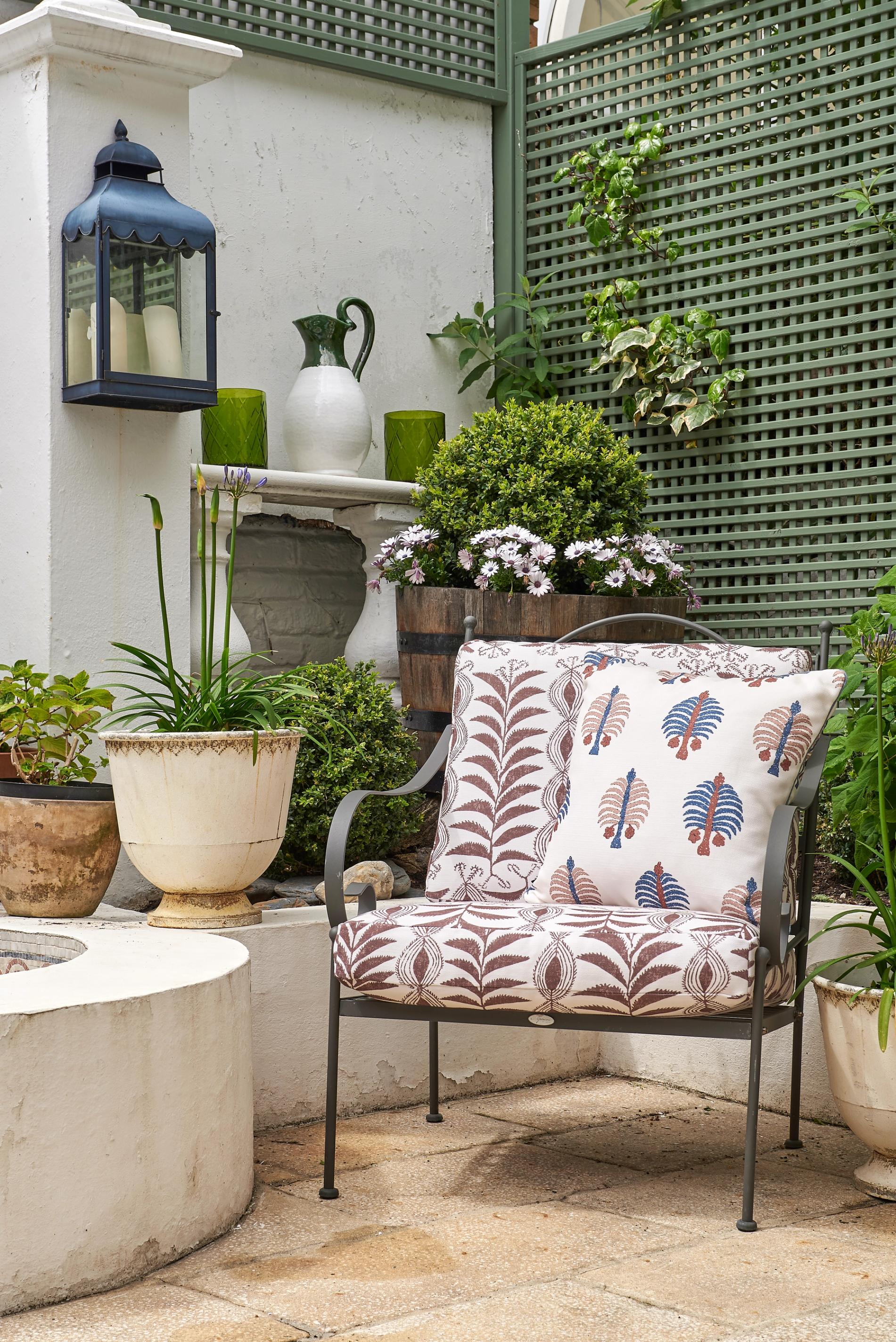 Trailing plants that offer privacy, water features that create ambiance, and paving slabs that draw in every bit of heat from the air, all represent the makings of an escapist patio, but when it comes to your textiles there is even more scope for exploration.