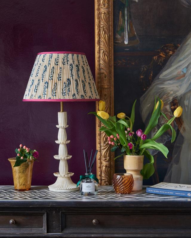 Bone inlay is used in many pieces, but among our favourite are decorative lamps, which combine these distinctive sculptural elements with a practical use perfect for the home.
