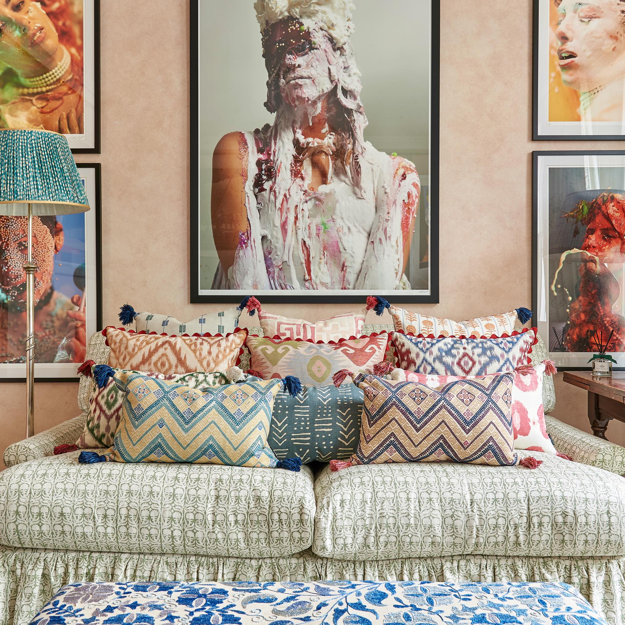 If wallpaper isn’t an option, we like to inject some colour through the curtains. A gallery wall sandwiched between two windows is ideal, because both sets of curtains will act as a frame to the wall in between. A bright statement pattern will really liven up the wall, and encourage the eye toward the gallery more than it did before.