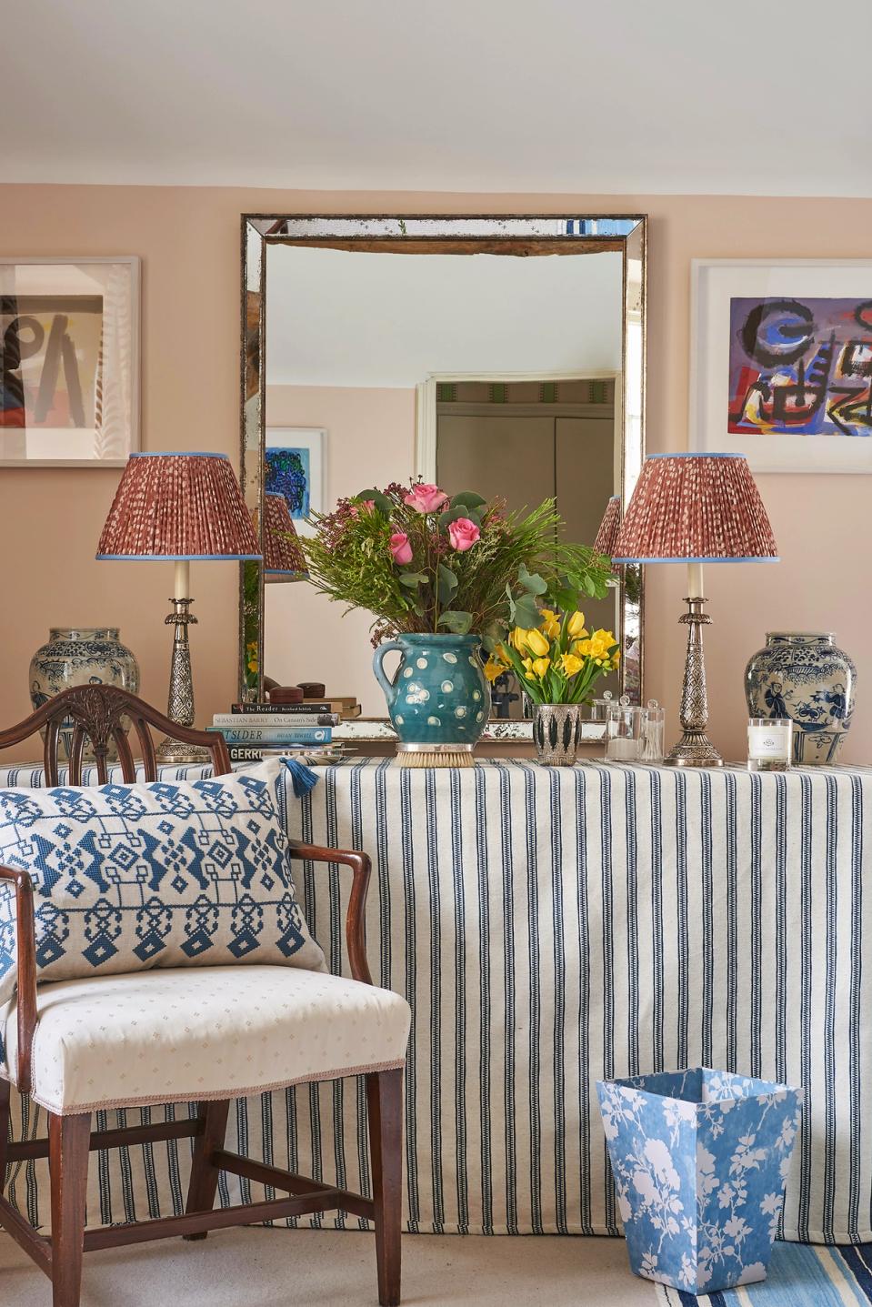 Doing so will give the room more of a flow, and also create a backdrop that looks more put-together for work calls.