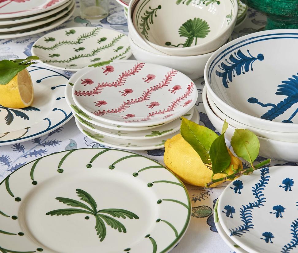 You can match your ceramics with other accessories in your kitchen, such as your wall colour palette or table linens. The kitchen is the best room in your home to display vibrant ceramics and porcelain, or to feature bouquets of flowers in ceramic water jugs. Large, pretty bowls are not only fun to collect but are perfect for fresh salads to place on your table – or to hold fresh lemons and limes for your G and T! When tablescaping- depending on the tablecloth, select the set of china that complements the linen best and adorn the table with lots of flowers in tall thin glass vases, but not too tall to restrict cross-table conversation.